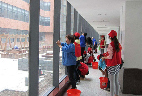 海淀區(qū)學(xué)校擦玻璃、學(xué)院路清洗玻璃北京京運恒通保潔公司2020-02-09